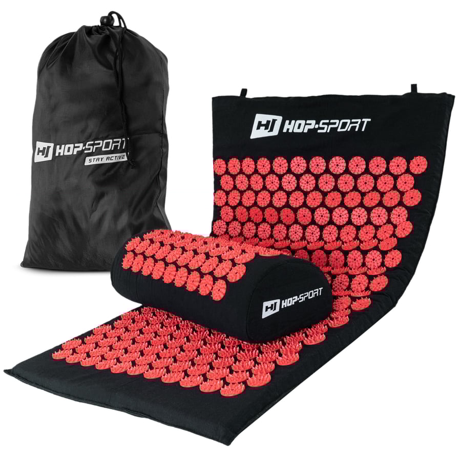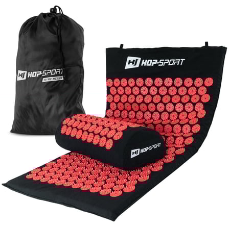 Akupresurní sada červená značky Hop-sport umožňuje intenzivní a relaxační masáž těla. Jednoduchý a efektivní relaxační nástroj, který svým působením pomáhá odstraňovat napětí ve svalech a zlepšuje krevní oběh. Doporučuje se pro lidi, kteří trpí bolestmi zad, bolestmi hlavy a také v případě problémů se spánkem.
