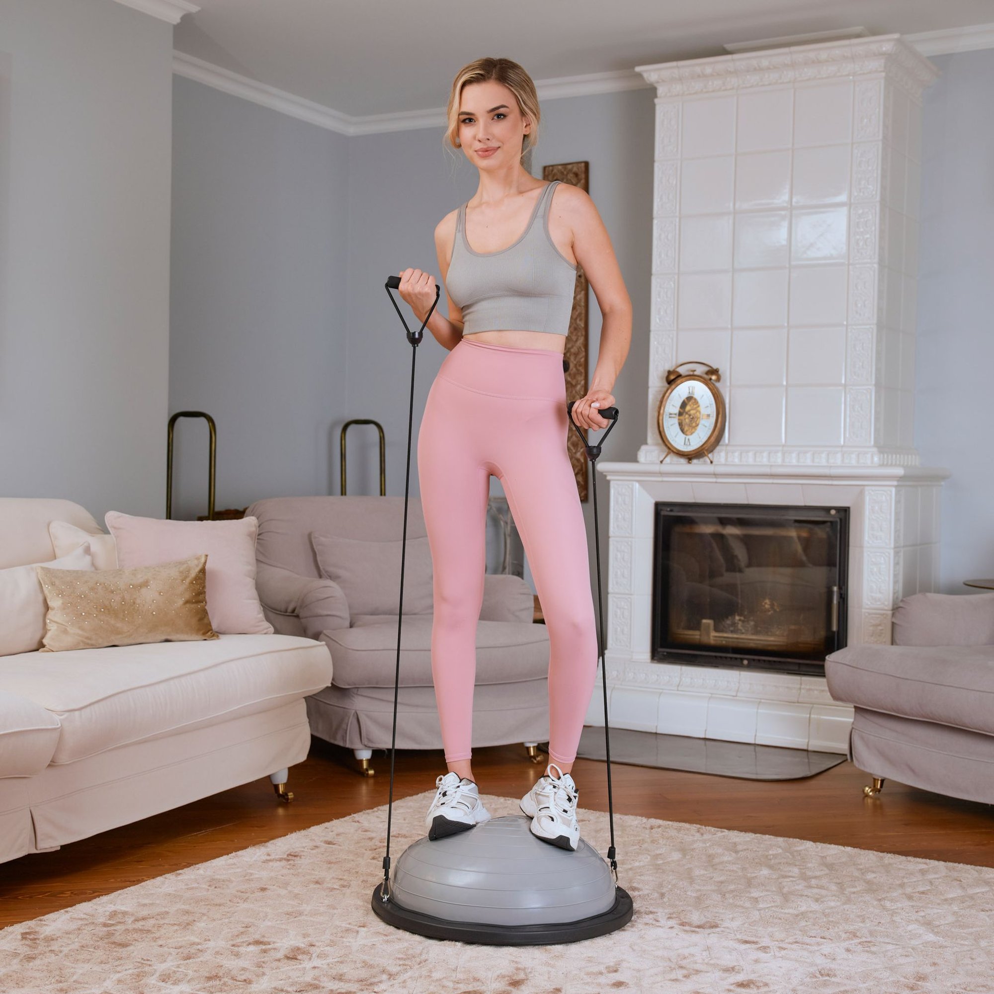 Díky svému tvaru je balanční platforma často nazývána také „poloviční míč“, protože připomíná rozříznutý fitness míč umístěný na stabilní základně. Během tréninku ji můžete používat dvěma způsoby – buď s vypouklou kopulí směrem nahoru, nebo s rovnou základnou nahoře.