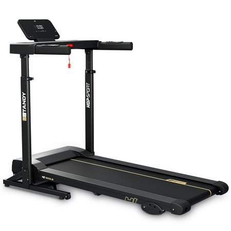 Běžecký pás HS-1900LB Standy je skvělou volbou pro každého, kdo chce pohodlně trénovat doma – bez složité obsluhy a bez nároků na velký prostor. Intuitivní tréninkový počítač s displejem zobrazuje čas, rychlost, vzdálenost, spálené kalorie i tep, a díky Bluetooth modulu propojíte pás s kompatibilními aplikacemi Kinomap, FitShow a Zwift – běžný trénink tak snadno proměníte v interaktivní trasu. Panel lze navíc naklopit a použít jako stabilní podložku pro notebook, takže můžete při klidné chůzi pracovat, sledovat seriály nebo se učit. Výkonný AC motor 1,5 HP zajišťuje plynulý chod v rozsahu 1–14 km/h a 3stupňové nastavení sklonu Vám umožní jednoduše zvýšit intenzitu tréninku. Komfortní běžecká plocha 108 × 40 cm, nastavitelná výška panelu a protiskluzový povrch zaručují pohodlné a bezpečné cvičení. Po tréninku pás rychle složíte a díky transportním kolečkům jej snadno přemístíte, což z něj dělá ideální řešení i do menších bytů.