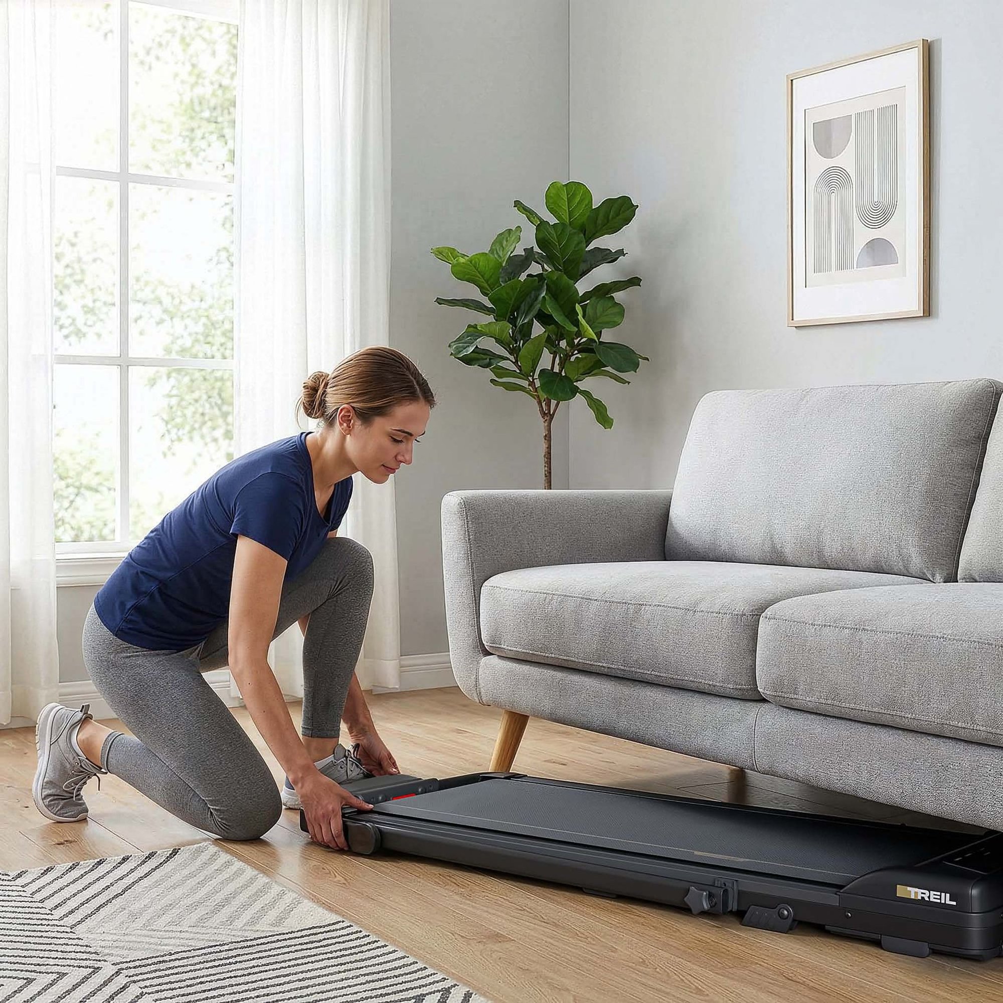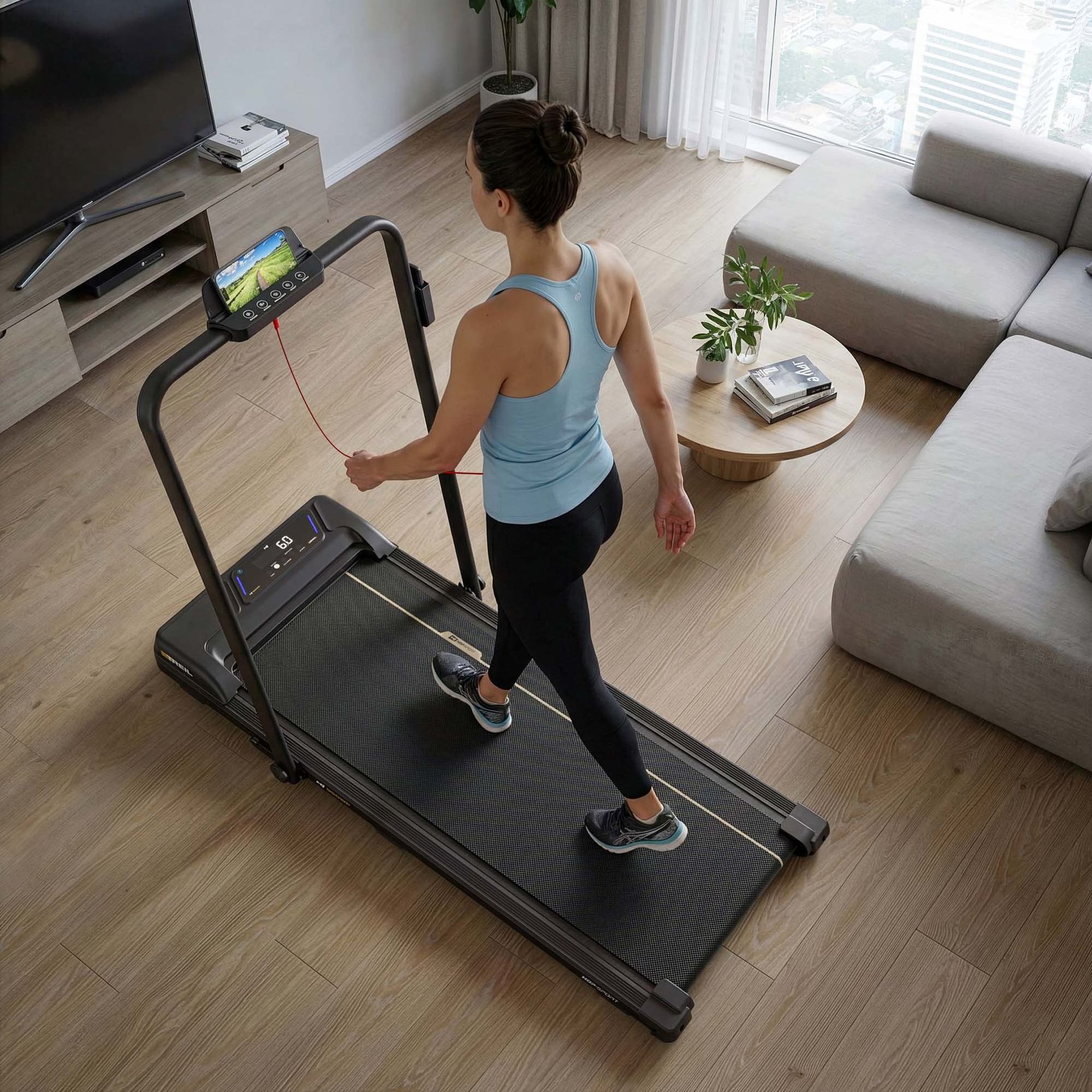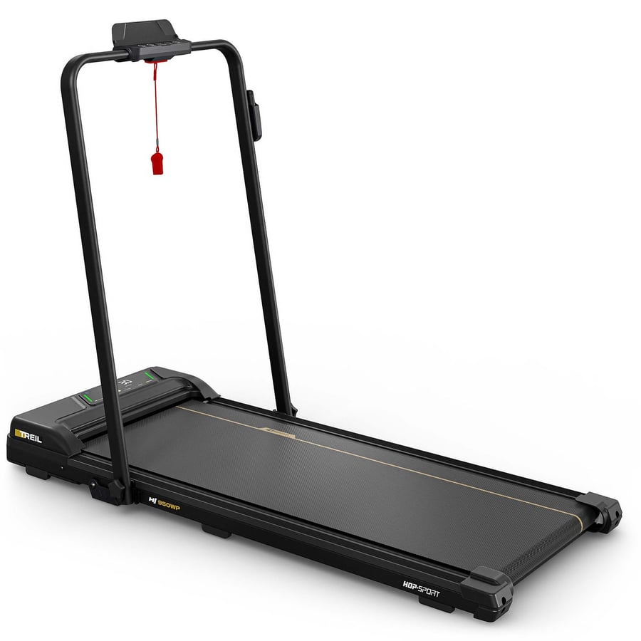 Elektrický běžecký pás HS-950WP Treil do domu i bytu. Kompaktní provedení, Bluetooth, LED displej a rychlost až 12 km/h. Komfortní běžecká plocha 105 × 40 cm.