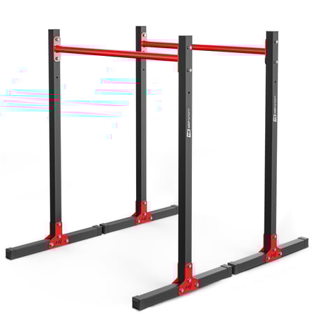 Stacionární bradla HS-1011K Vám umožňují efektivně posilovat a tvarovat svalstvo břicha, rukou a zad prováděním různých cvičení, jako např. švédské kliky nebo zvedání nohou ve visu. Výhodou produktu je možnost výškového nastavení tyčí a odolná ocelová konstrukce.