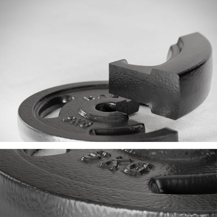 Litinové kotouče vyrobené z plného odlitku zaručují trvanlivost po léta intenzivního používání. Jsou opatřeny lakovanou vrstvou odolnou proti odštípnutí, která chrání závaží před korozí. Naše závaží mají navíc speciální ražbu s označením hmotnosti umístěnou na viditelném místě, což vám usnadní rychlou výměnu kotoučů mezi tréninkovými sériemi.