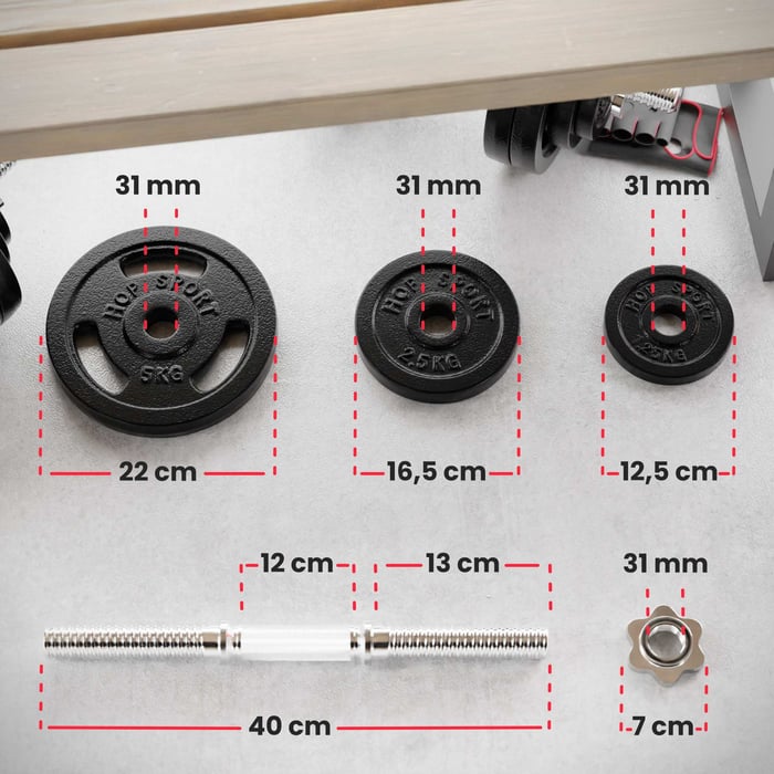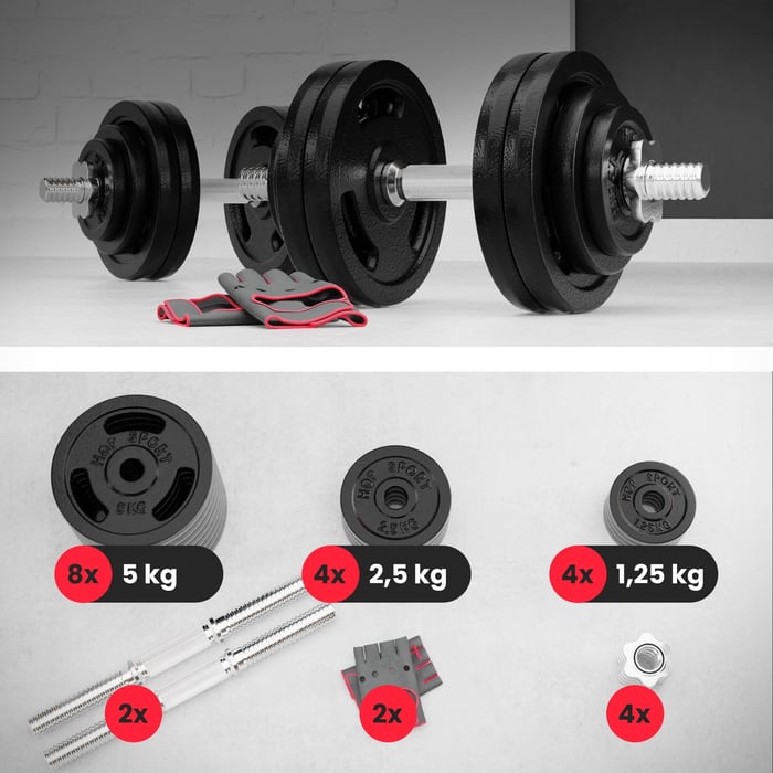 Litinové činky umožňují libovolnou konfiguraci hmotnosti zátěže. Díky tomu bude váš silový trénink rozmanitý a tím i efektivnější!