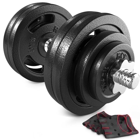 Pevná litinová činka značky Hop-Sport 1x30 kg s rukavicemi Vám pomůže zlepšit fyzickou kondici a vybudovat svalovou hmotu horní části těla a rukou. Nabízená činka zahrnuje ocelový hřídel se závity a odolné litinové kotouče.