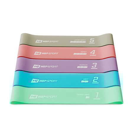 Sada odporových gum HS-L650RLP v pastelových barvách, o rozměrech 600x50 mm značky Hop-Sport se skládá z pěti odporových gum s různými úrovněmi odporu, které se budou úspěšně využívat při domácích cvičeních. Jejich univerzální použití znamená, že je můžete použít při různých druzích tréninku - od silových, přes fitness, až po rehabilitační cvičení. Cvičení s gumami vám pomůže posílit svaly a klouby celého těla. Jsou doporučené pro amatéry, ale i pokročilé. Sada HS-L650RLP obsahuje pět latexových gum, které nabízejí různé úrovně zátěže v širokém rozmezí od 2,5 do 18 kg. Díky svým malým rozměrům se gumy velmi snadno skladují a přenášejí.