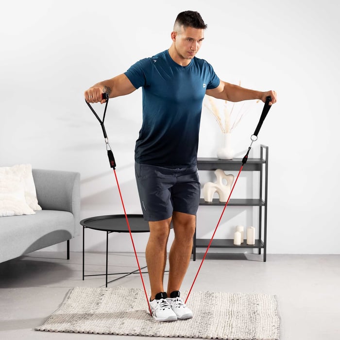 Sada expandérů HS-R050RT Vám poskytne trénink celého těla. Kromě toho, že je účinným nástrojem pro modelování rukou, hrudníku a zad, díky popruhům, které jsou součástí soupravy, můžete provádět i trénink nohou. Takový trénink Vám pomůže posílit zejména kotníky a kolena.