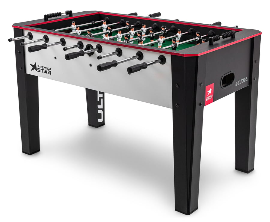 Stolní fotbal Ultra značky Premier Star je stolní fotbal nejvyšší kvality. Stolní fotbal je populární domácí a klubová hra, která poskytuje nezapomenutelné emoce! Stůl Ultra je velmi stabilní a odolný, nohy stolu jsou vyrobeny z uzavřených profilů a vodící tyče jsou pevné a pochromované.