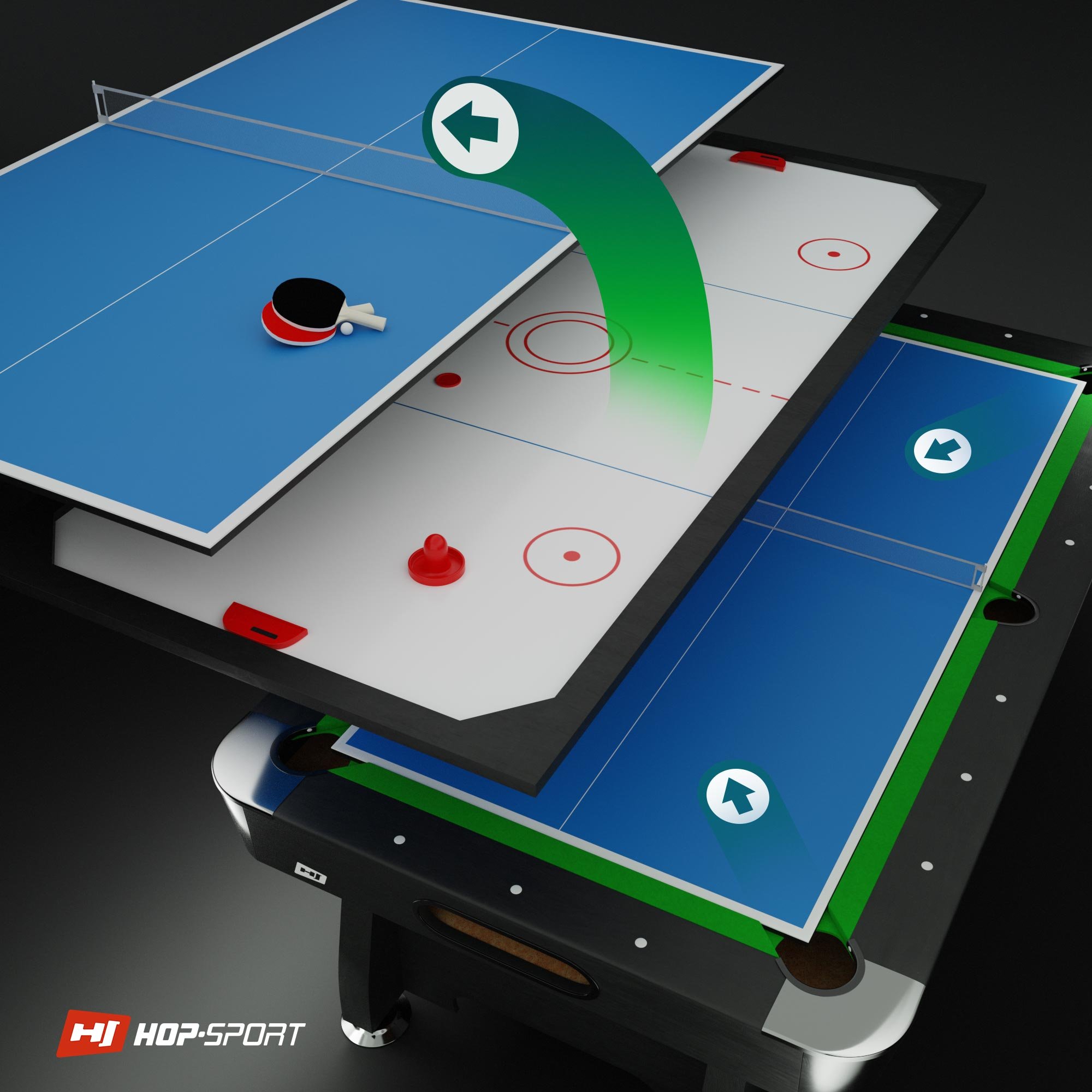 Tento praktický oboustranný nástavec vám umožní během chvilky proměnit kulečníkový stůl na ping-pongový stůl nebo na stůl pro air hokej. Nástavec se jednoduše umisťuje mezi okrajové mantinely – stačí si jen vybrat, kterou hru si chcete užít.