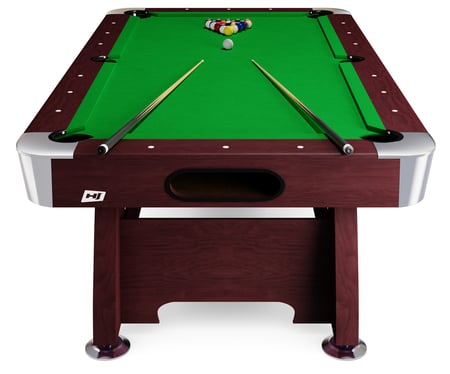 Kulečníkový stůl Vip Extra 7 ft višeň/zelený, kompletní s veškerým příslušenstvím pro hru a gratisi. Kompatibilní s jinými nástavci stolů značky Hop-sport.