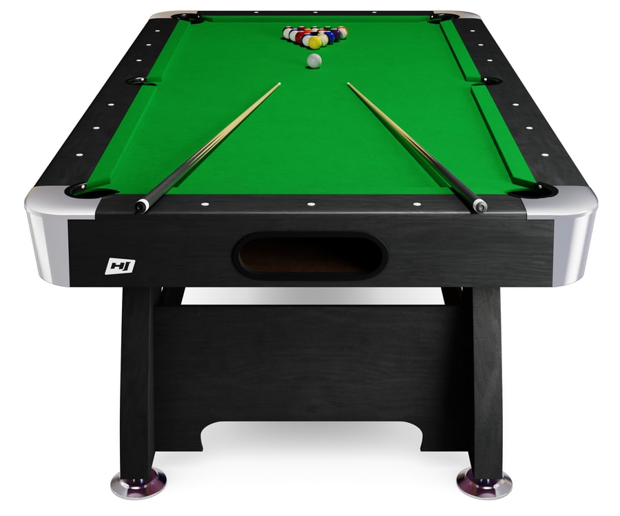Kulečníkový stůl Vip Extra 8 ft v černo/zelené barvy, kompletní s veškerým příslušenstvím pro hru a gratisi. Kompatibilní s jinými nástavci stolů značky Hop-sport.