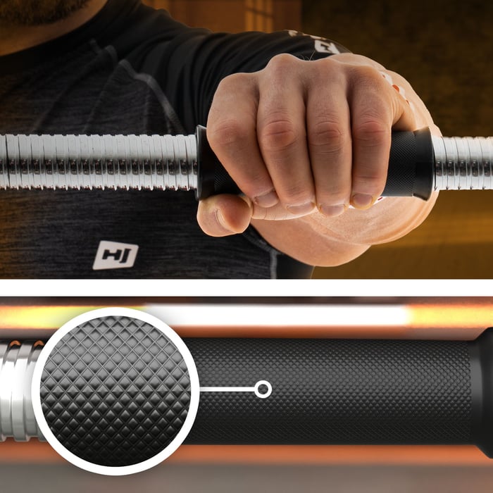 S tyčemi Hop-Sport zvednete i mimořádně těžké břemena! Jistotu úchopu zajišťují drážkované rukojeti s protiskluzovým povrchem, díky kterému činky během tréninku nekloužou v rukou. V případě plastové tyče o délce 52 cm byly použity speciální rukojeti z vysoce kvalitního syntetického materiálu, odolného proti poškrábání a poškození.