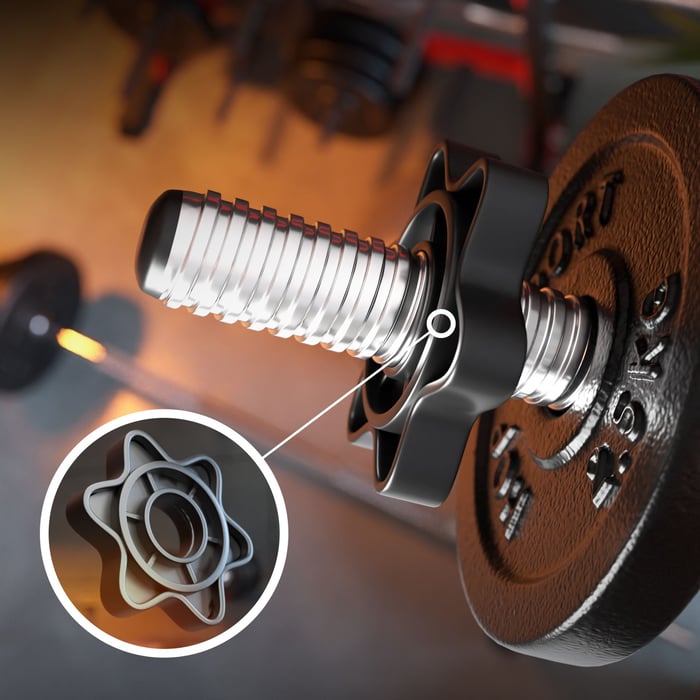 Tyč je vybavena speciálními koncovkami se závitovým povrchem. Zátěž na ně působící je zajištěna plastovými maticemi, které zabraňují pohybu kotoučů během cvičení. Díky tomu můžeme provádět i intenzivní trénink, aniž bychom se museli obávat o svou bezpečnost.