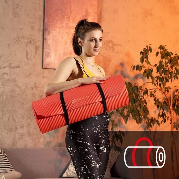 Fitness podložku Hop-Sport si snadno vezmete s sebou na hodiny jógy nebo fitness, do parku nebo na pláž. Nepotřebujete k tomu speciální tašku ani pouzdro. Gymnastická podložka NBR o tloušťce 1 cm je dodávána s popruhem na přenášení, takže si podložku můžete vzít kamkoli s sebou.