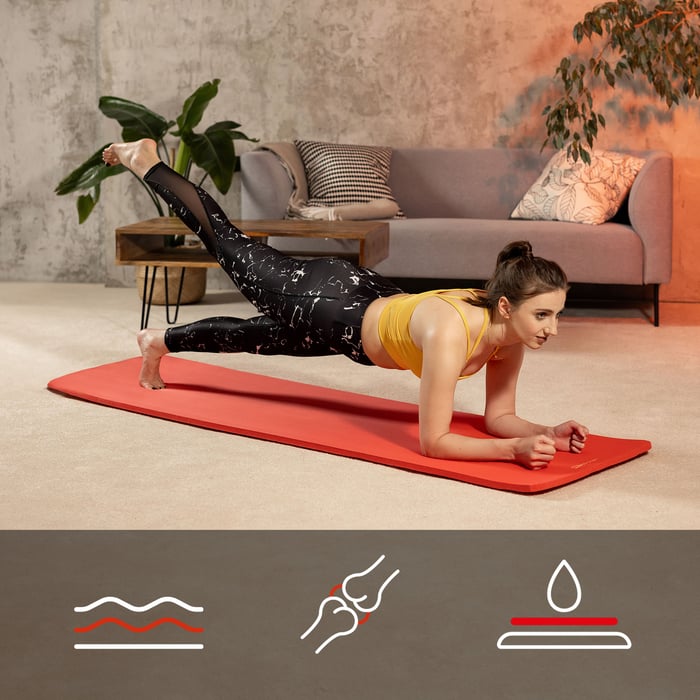 Díky délce 190 cm je fitness podložka ideální i pro vyšší lidi nebo pro každého, kdo oceňuje více prostoru a volnosti při tréninku. Výrobek je voděodolný a snadno se čistí. To zlepšuje hygienu při používání tréninkové podložky i při nejintenzivnějších cvičeních. Součástí je popruh pro přenášení, takže podložku můžete snadno přepravovat.