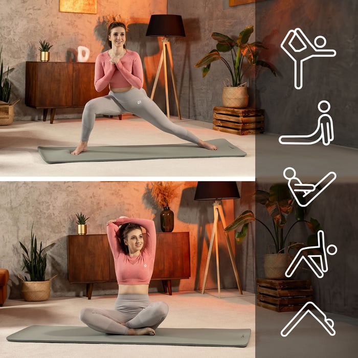 Fitness podložka NBR o tloušťce 1,5 cm je vhodná pro různé typy tréninků. Můžete na ní cvičit jógu a pilates, ale také takzvané cviky s nízkým dopadem, jako jsou planky, záklony a cviky na břicho. Kombinace tloušťky 1,5 cm a větších rozměrů podložky zajišťuje pohodlí a bezpečnost při každém tréninku. Jedinečná struktura podložky navíc nabízí vynikající přilnavost, což zase umožňuje stabilní držení těla a přesné vykonávání složitých pohybů nebo ásan.