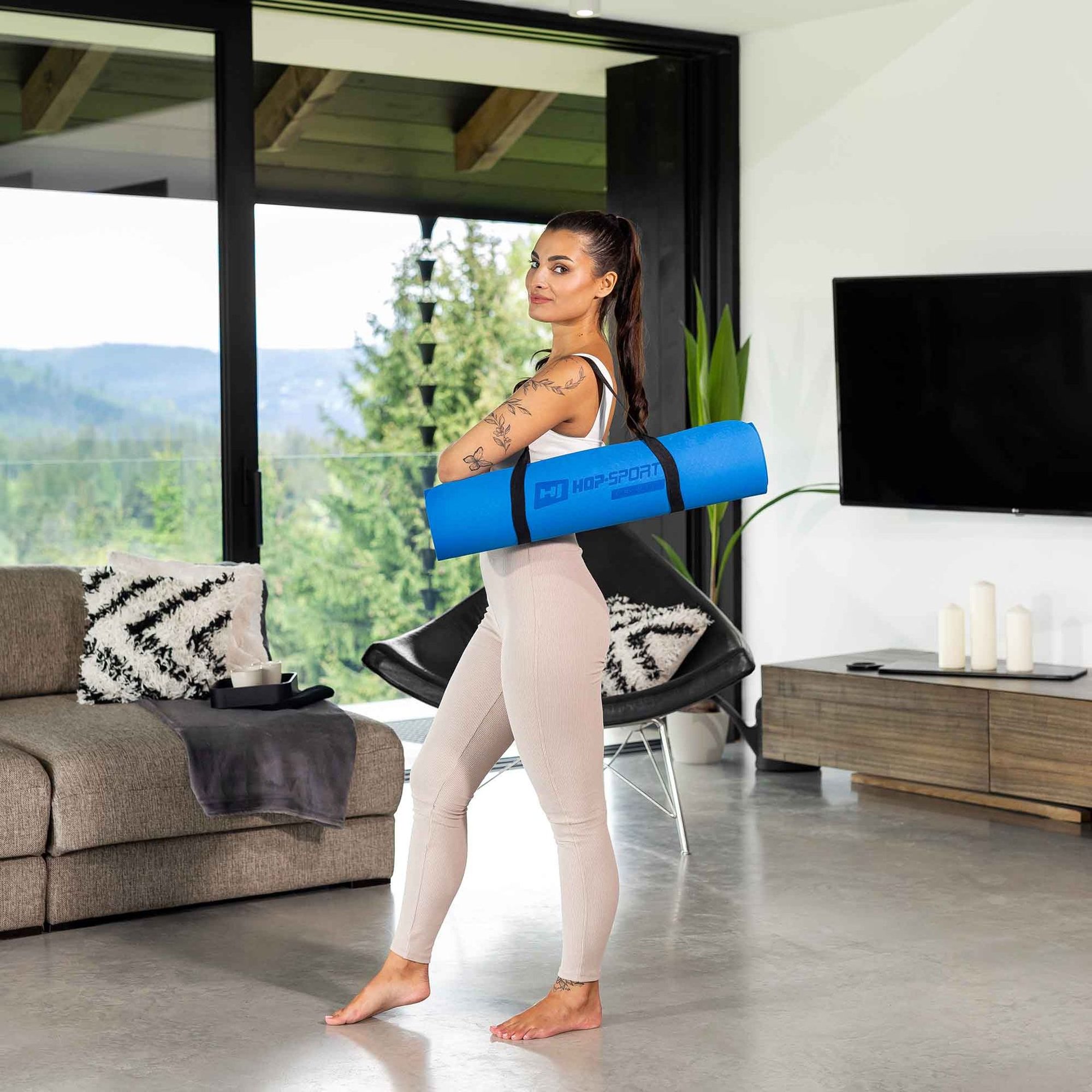 Podložka fitness TPE HS-T006GM 0,6cm modrá - je pohodlná podložka na cvičení o rozměrech 183 x 61 cm, vyrobená z vysoce kvalitní TPE pěny, neobsahuje vůně. Během domácích tréninků nenahraditelný. Ideální pro jógu, fitness, pilates a pro rehabilitaci.