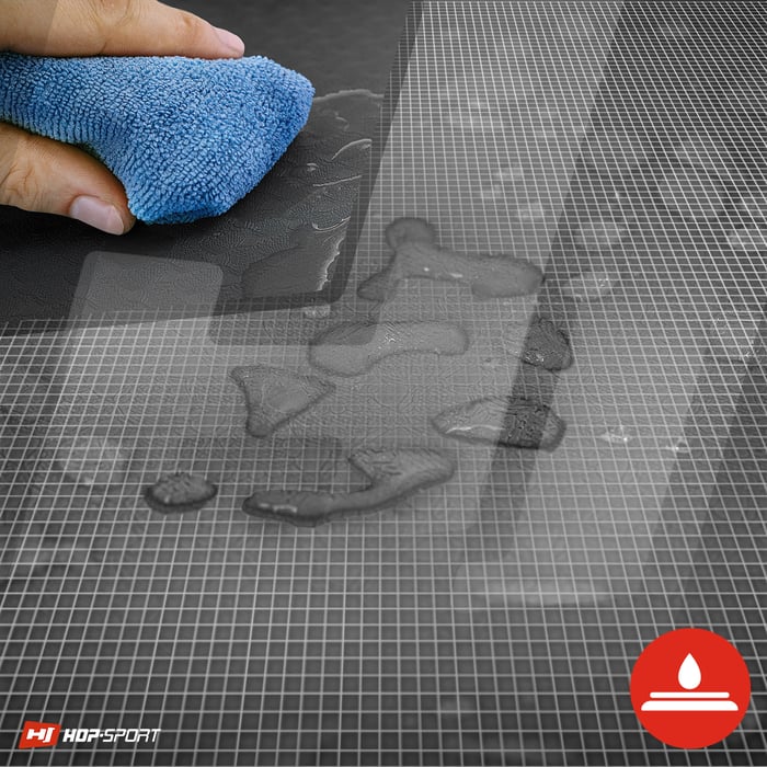 Podložka HS-T006GM neabsorbuje pot a vodu. Díky těmto vlastnostem se velmi snadno čistí - důkladně otřete vlhkým hadříkem. Podložka zasychá velmi rychle - to je důležitá vlastnost, pokud plánujete podložku používat často, např. několikrát denně.