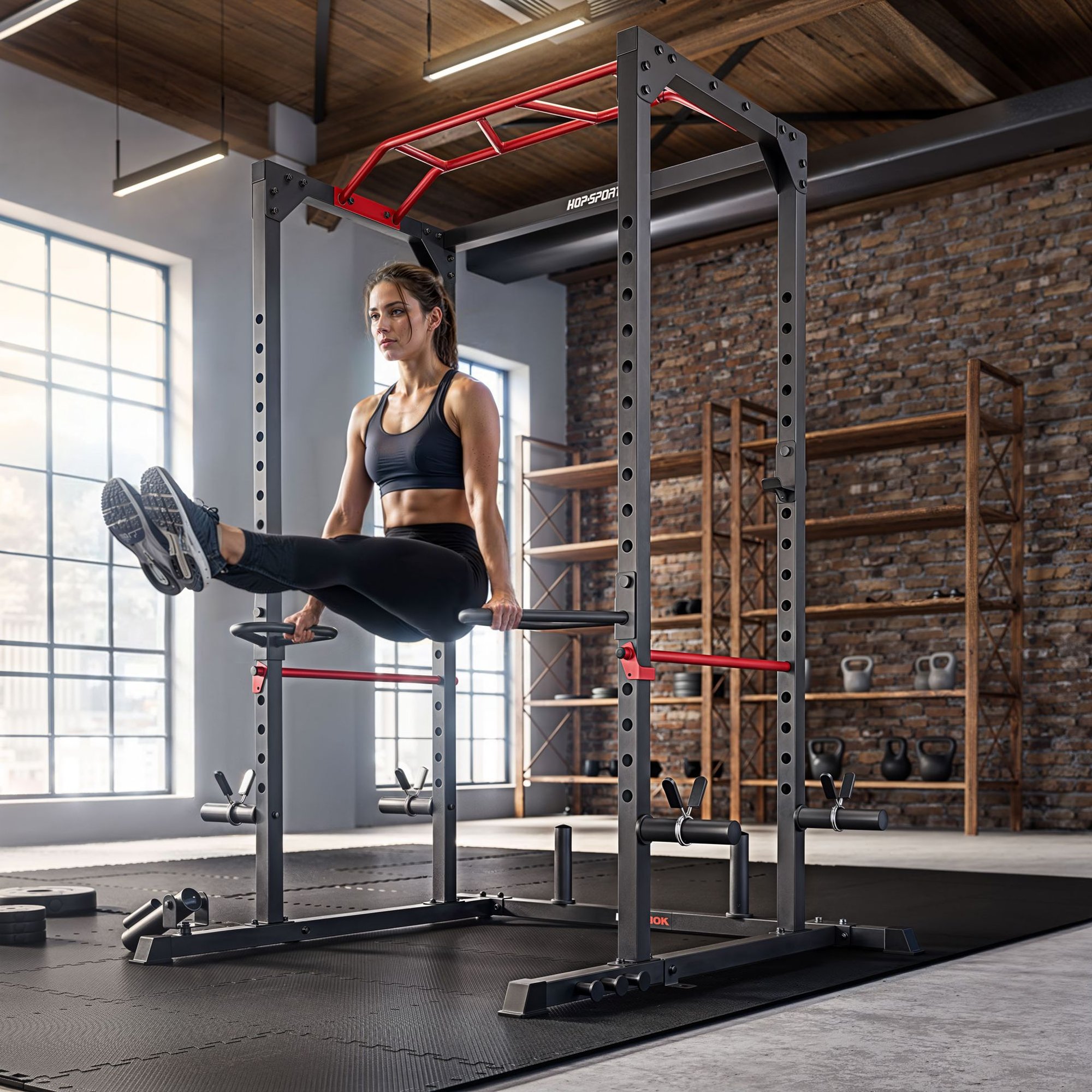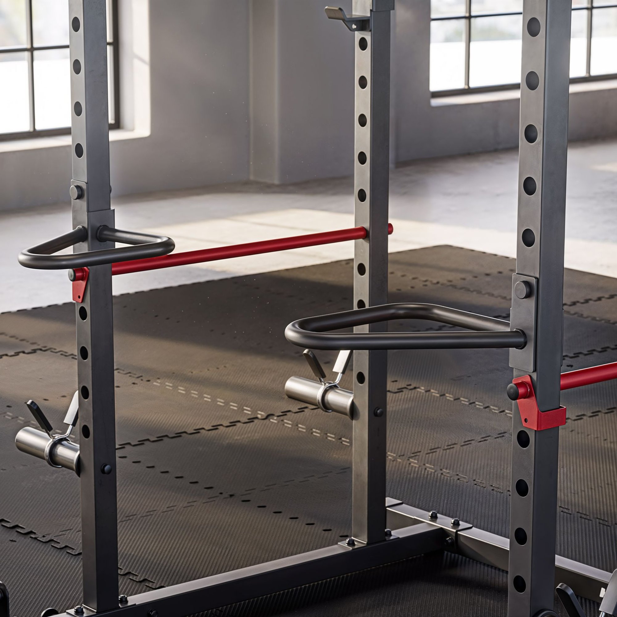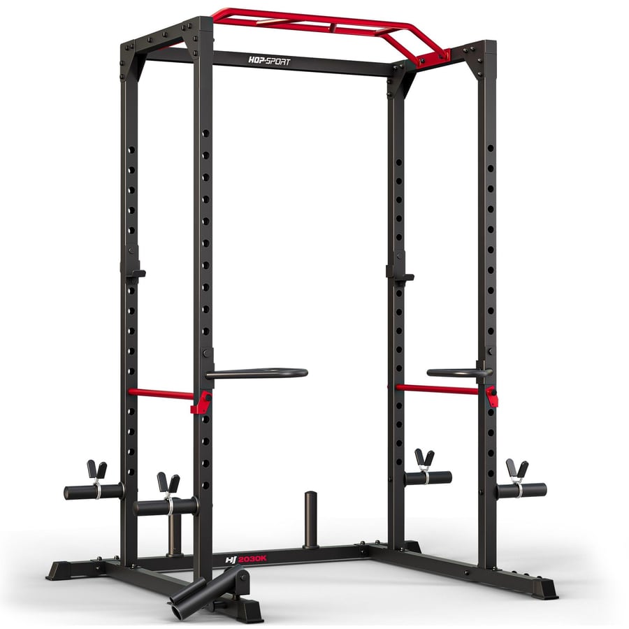 HS-2030K skvěle poslouží jako multifunkční tréninková klec – pevná základna pro cvičení s vlastní vahou. Hrazda ve formě mřížky nabízí různé varianty úchopu, díky čemuž můžete trénink zpestřit. Bradla na dipy umožňují bezpečné posilování horní části těla s nosností až 150 kg. Speciální piny pro upevnění odporových gum umožňují zvýšit nebo snížit obtížnost cviků, například u dřepů či shybů.
