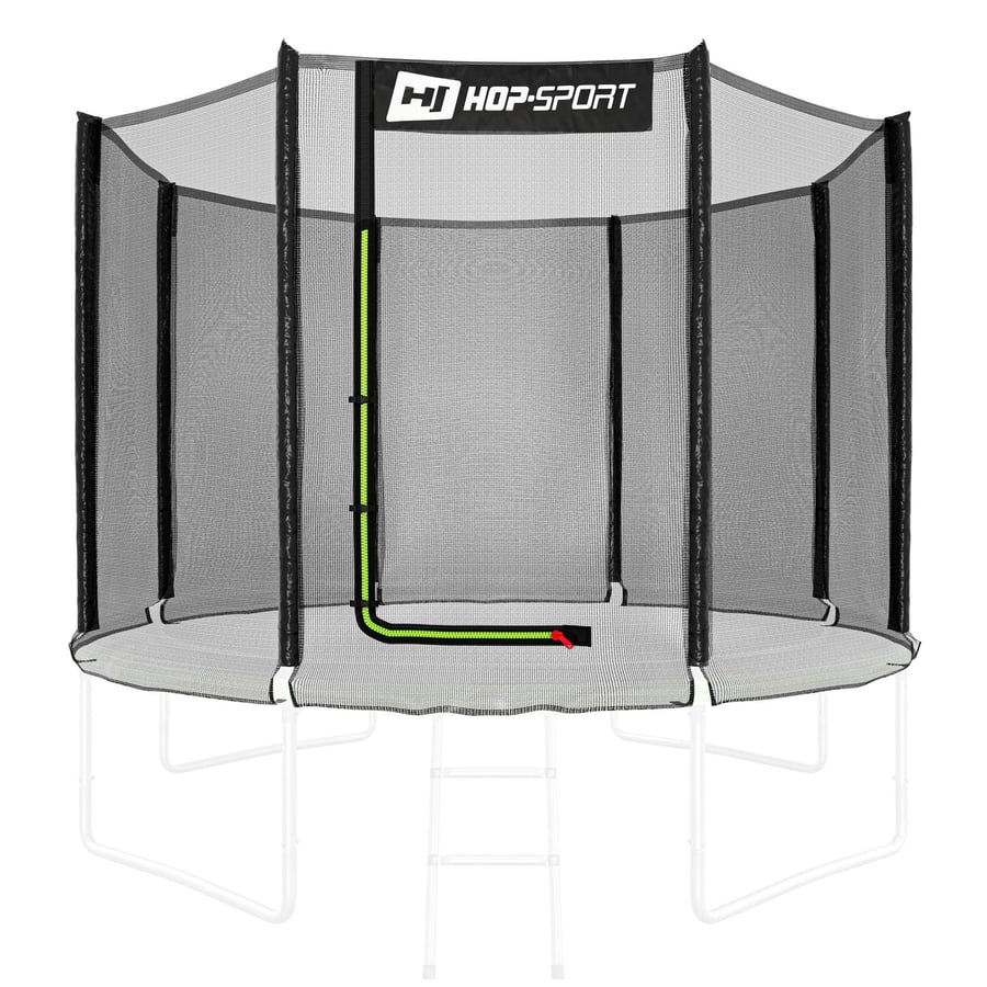 Vstup je proveden ve tvaru písmene L, což usnadňuje vstup i výstup. Zelený zip je odolný a vhodný pro venkovní použití. Zip se snadno zapíná, ale během skákání se samovolně nerozepíná. Doplňkové přezky vstup zajistí a udržují síť pevně napnutou po celém obvodu.