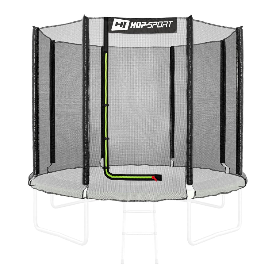 Vstup je proveden ve tvaru písmene L, což usnadňuje vstup i výstup. Zelený zip je odolný a vhodný pro venkovní použití. Zip se snadno zapíná, ale během skákání se samovolně nerozepíná. Doplňkové přezky vstup zajistí a udržují síť pevně napnutou po celém obvodu.