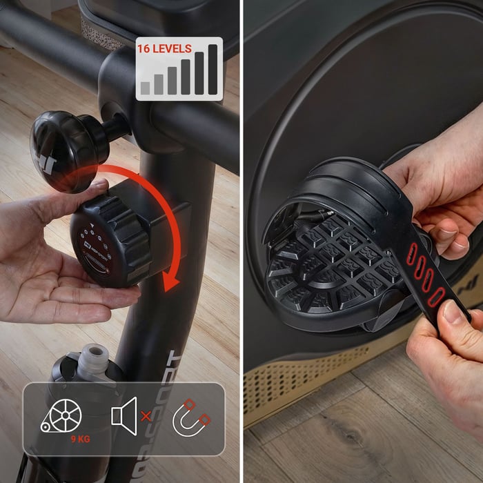 S rotopedem Spark trénujete přesně tak, jak chcete. Díky 16stupňové regulaci odporu můžete kdykoli přizpůsobit intenzitu své aktuální kondici – od lehkého zahřátí po náročný trénink. Magnetický systém s 9kg setrvačníkem zajišťuje plynulý a tichý pohyb, takže můžete cvičit i večer, aniž byste rušili ostatní.