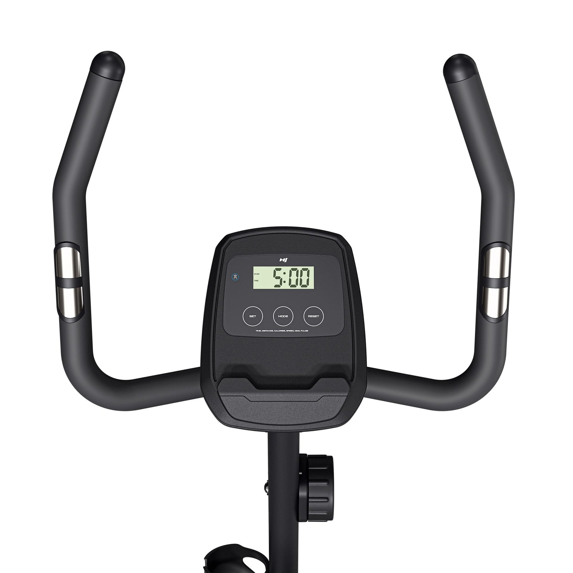 Stacionární kolo HS-3000H Nexon je vybaveno počítačem s LED displejem, který v reálném čase zobrazuje klíčové tréninkové údaje: čas, rychlost, vzdálenost (km), spálené kalorie a tepovou frekvenci. Intuitivní ovládací panel s tlačítky SET, MODE a RESET umožňuje snadné naplánování tréninkové jednotky dle individuálních cílů.