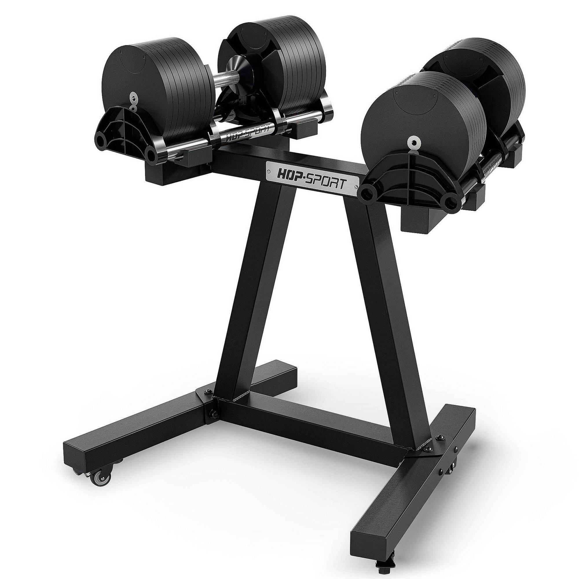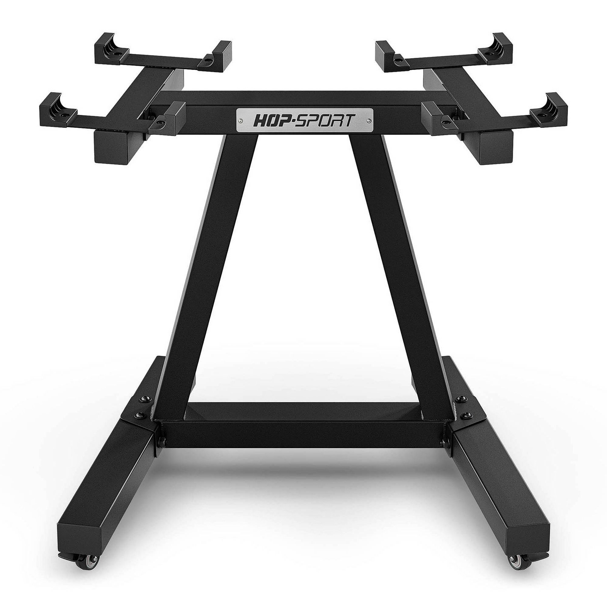 Díky čtyřem vysunutým podpěrám s odolnými plastovými krytkami Vaše činky vždy leží stabilně a jsou chráněny před poškrábáním a posunutím. Délka police 35,4 cm poskytuje optimální prostor pro pohodlné uchopení činek i během intenzivního tréninku. Každá police unese až 75 kg, což umožňuje bezpečné uložení těžších sad. Tento dvouúrovňový stojan je kompatibilní s nastavitelnými činkami Hop-Sport HS-TG3040D, díky čemuž je skvělým doplňkem domácí posilovny.