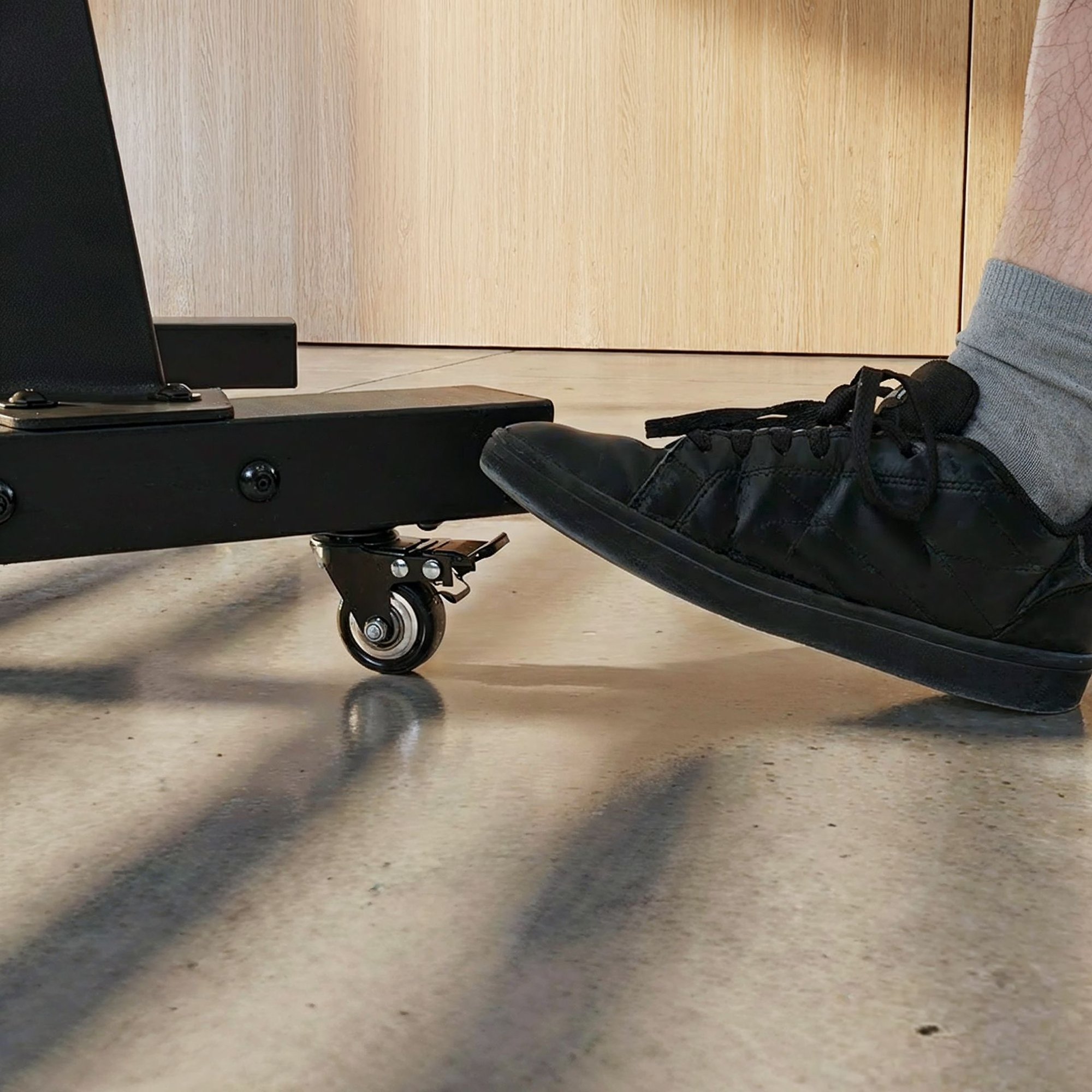 Chcete změnit uspořádání posilovny? Žádný problém. Vestavěná transportní kolečka s brzdami fungují hladce, takže bez námahy přesunete stojan s činkami po místnosti. Brzda koleček účinně zafixuje konstrukci – během tréninku stojan stojí pevně a zachovává rovnováhu v každé poloze. Možnost přesunutí kamkoli bez nutnosti demontáže je praktické řešení, které Vám umožní snadno přizpůsobit uspořádání posilovny Vašim potřebám.