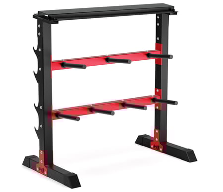 Stojan Hop-Sport HS-1007 Vám pomůže v poukládaných tyčí a závaží na jednom místě a rozdělit je podle Vašich preferencí. Díky použití vysoce kvalitní oceli Vám konstrukce stojanu nabízí možnost uložení závaží až do 350 kg.