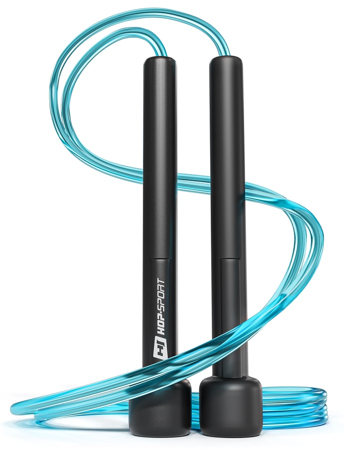 Modré švihadlo Hop-Sport je vybaveno ergonomickými rukojeťmi a odolným a flexibilním lankem. Díky švihadlu můžete provádět intenzivní kardio trénink.