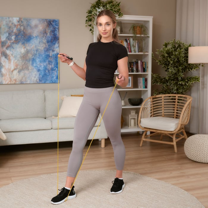 Švihadlo Hop-Sport je vybaveno ergonomickými rukojeťmi, které zajišťují pohodlí při používání a dobré držení v ruce i při intenzivním tréninku. Díky materiálu, ze kterého jsou vyrobeny, navzdory potu nekloužou.